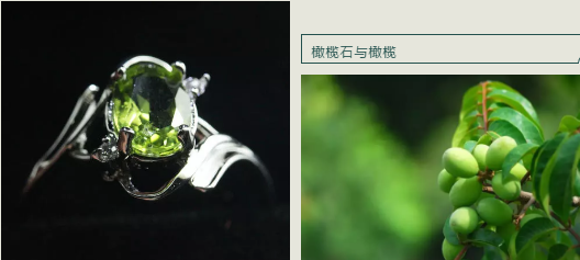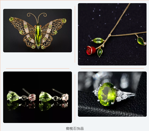 时至今日,橄榄石仍以其清澈秀丽、赏心悦目的色泽,象征着和平与幸福的美好意愿,成为珠宝市场上颇受欢迎的宝石,常用来做胸针、项链、戒指、耳坠等饰品。