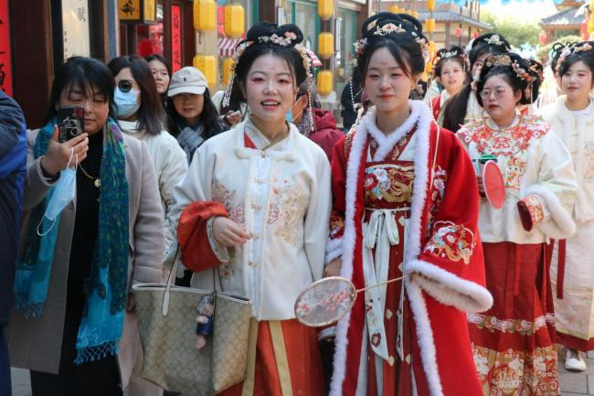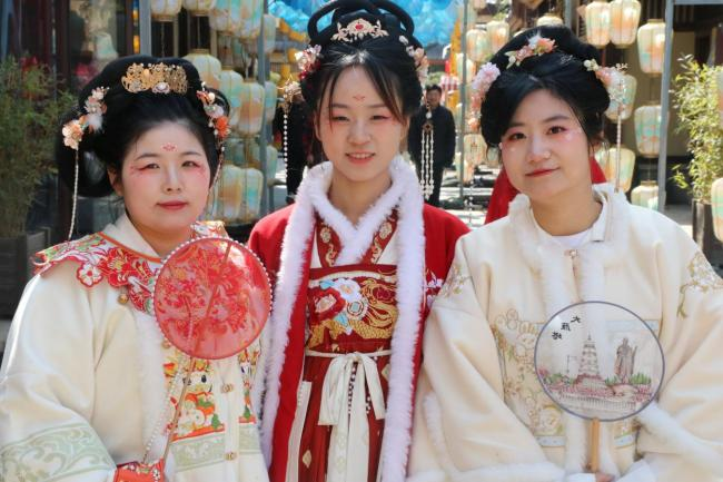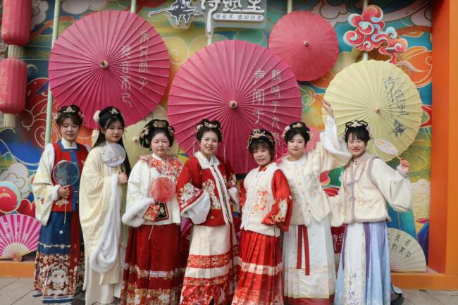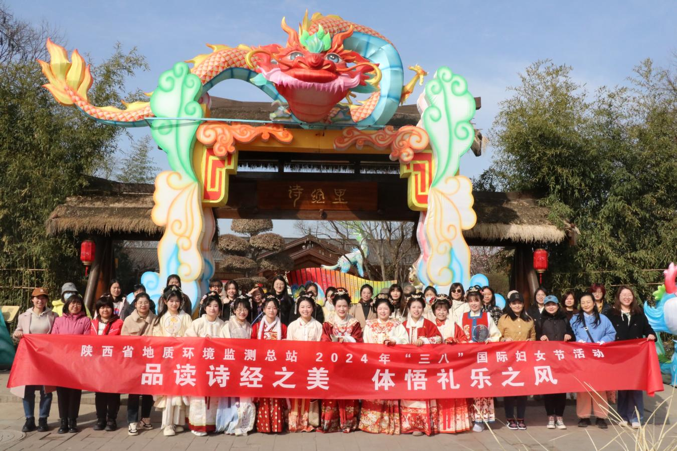 总站全体女职工齐聚诗经里文化街区,感悟诗歌风韵,体验非遗文化。女职工们集体观看了《风雅诗颂》演出,回溯《诗经》的采集传承过程,探寻诗经文化的起源与发展;体验了非遗扎染技艺,学习了解扎染的文化传承、工艺原料和技术手法,分享白布扎结浸染后呈现出的质朴图案,感受劳动之美。部分女职工化身“国风丽人”,身着汉服行走于诗经小镇,衣袂飘飘,风姿绰约,融入满园初春景色,俨然一幅美丽的画卷,生动地展示了传统服饰的风采和传统文化的魅力。