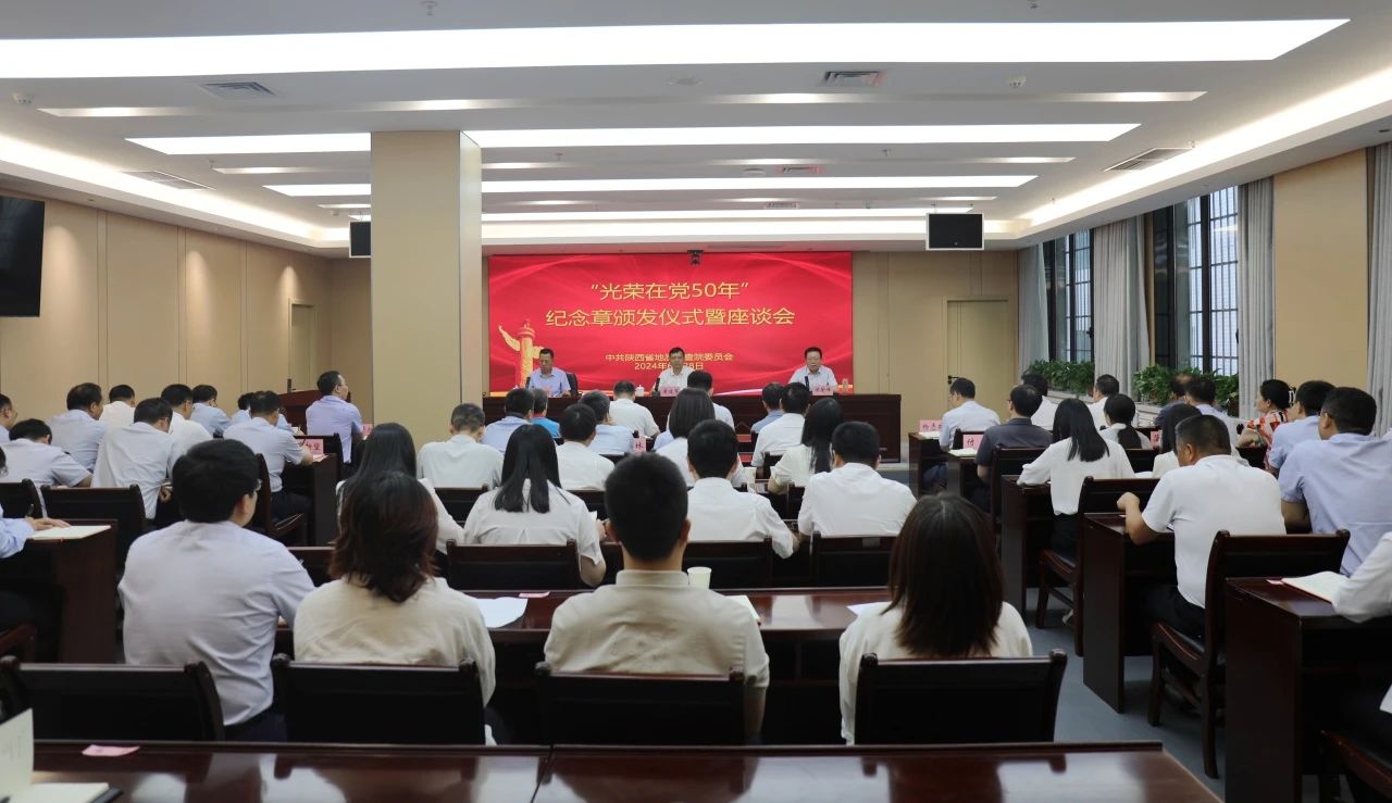 6月28日,在中国共产党成立103周年前夕,9323彩集团召开“光荣在党50年”纪念章颁发仪式暨座谈会,为党龄满50年的党员颁发“光荣在党50年”纪念章。省地调院党委书记黄建军出席并讲话。院长侯登峰主持。副院长张晓团,“光荣在党50年”退休老党员王德霞,直属各单位党委、党总支,机关各党支部负责同志,机关各处室、直属单位党员代表参加座谈会。