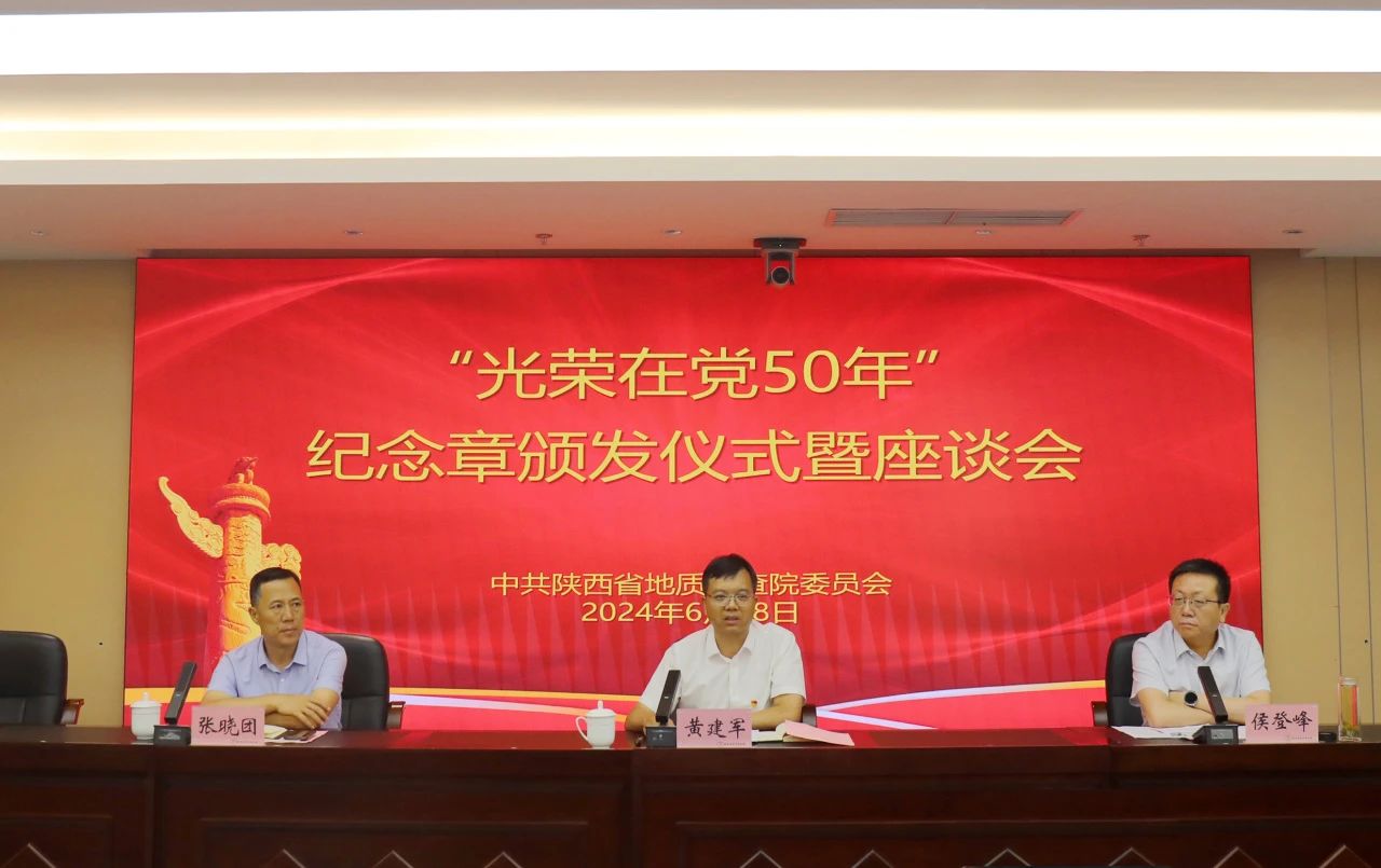 黄建军向荣获“光荣在党50年”纪念章的老党员表示祝贺和敬意,高度评价老党员永远听党话、跟党走的忠诚奉献,充分肯定老党员为地质调查事业付出的心血和汗水,号召学习老党员信仰坚定、对党忠诚的政治品格和初心不改、无私奉献的高尚精神。