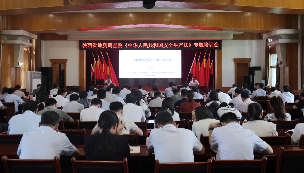 为进一步夯实安全生产责任,提升安全防范能力,6月11日,9323彩集团举办了《中华人民共和国安全生产法》(以下简称《安全生产法》)专题培训。省地调院院长侯登峰主持会议并讲话,副院长张晓团、全院处级干部、直属各单位科所负责人、安全生产相关工作人员等100余人参加培训。