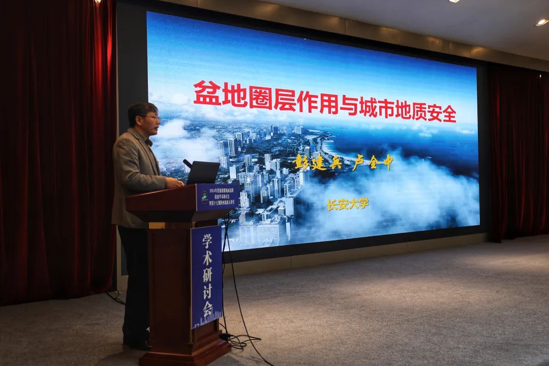 特邀报告环节,受中国科学院院士彭建兵委托,长安大学卢全中教授对彭院士的《盆地圈层作用与城市地质安全》报告作了讲授,系统介绍了盆地圈层结构中的基底构造圈、盖层结构圈、水文循环圈、地下空间圈、地面工程圈与城市地质安全之间的关系,指出了未来城市发展可能面临的各类地质安全风险及防控策略。