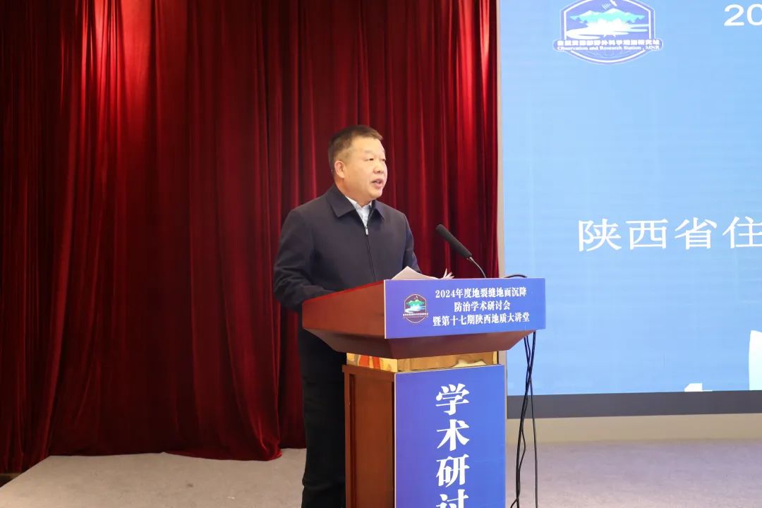 黄建军在致辞中说,地裂缝地面沉降是影响城市地质安全的重要因素,加强地裂缝地面沉降防治相关研究对于支撑城市地质安全有重要意义。近年来,省地质调查院在城市地质调查、地裂缝地面沉降监测预警、地下水监测和城市地质安全风险防控等方面做了大量工作,为城市规划和工程建设提供了有力支撑。希望以本次研讨会为契机,加强与相关部门交流合作,充分发挥自然资源部陕西西安地裂缝与地面沉降野外科学观测研究站、陕西省城市地质与地下空间工程技术研究中心等创新平台作用,更好支撑服务城市建设和经济社会发展。