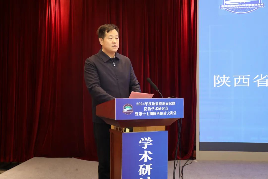 11月29日,2024年地裂缝地面沉降防治学术研讨会暨第十七期陕西地质大讲堂在西安召开。省地质调查院党委书记黄建军致辞,省自然资源厅副厅长蒲明辉、省住房和城乡建设厅副厅长付涛、省水利厅二级巡视员许灏出席会议并讲话。开幕式和特邀报告环节由省地质调查院院长侯登峰主持。