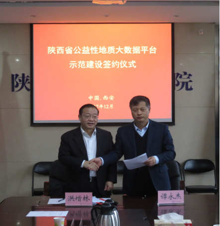 12月29日,我院与中国地质调查局发展研究中心召开了陕西省公益性地质大数据平台示范建设座谈会,就地质大数据平台建设及镇安西部矿产勘查信息服务示范工程项目合作进行了会谈,签署了合作协议书。院长苟润祥主持座谈会,党委书记洪增林致辞。中国地质调查局发展研究中心总工程师谭永杰、信息工程室主任李丰丹,院总工程师宁奎斌以及技术处、地调中心、信息中心负责人等参加会议。洪增林书记、谭永杰总工程师分别代表双方签署协议,这是我院践行国家大数据战略,推进数据资源共享的一个重要举措。