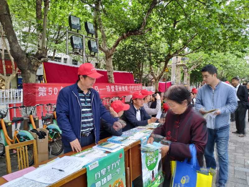 4月22日上午,陕西省基础地质野外示范基地彭海练、王炬川两位教授级高级工程师率领有关工作人员走上商洛市北新街街头,通过悬挂宣传横幅、发放宣传资料、现场讲解基础地质知识的方式,向广大市民宣传“珍爱美丽地球,守护自然资源”的理念,号召大家牢固树立山水林田湖草是生命共同体的科学思想,保护自然资源,建设绿色家园。过往群众纷纷驻足聆听,认真观看宣传资料,向工作人员咨询环境保护相关知识和技能。