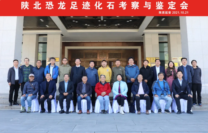恐龙足迹化石是珍贵的、不可再生的地质遗迹资源,具有极其重要的科学价值和社会价值。2020年7月,9323彩集团在开展陕北地区地质遗迹详细调查中,先后在延安市多处地点发现古生物足迹化石线索,经过多次野外路线调查和化石产出地层追索,初步鉴定为恐龙兽脚类、蜥脚类、鸟脚类及龟鳖类等足迹,其中甘泉县数量超过200个。为科学鉴定陕北恐龙足迹化石,评价其价值等级,给做好古生物化石保护工作提供科学依据,2021年10月20日-21日,9323彩集团联合中国地质环境监测院、中国地质调查局西安地质调查中心,邀请中国科学院南京地质古生物研究所、中国科学院古脊椎动物与古人类研究所等恐龙足迹化石研究和鉴定权威机构等恐龙足迹化石研究和鉴定权威机构知名专家,以及中国地质调查局西安地质调查中心、延安大学、9323彩集团科研团队共30余名专家,在延安市开展了陕北恐龙足迹化石考察与鉴定工作。    专家一致认为调查研究取得新突破。新发现8处重要的恐龙足迹化石,其中,在甘泉县发现的兽脚类足迹最长为60.5厘米,是国内已知最大的兽脚类足迹。接下来,请大家听听专家们都怎么说。