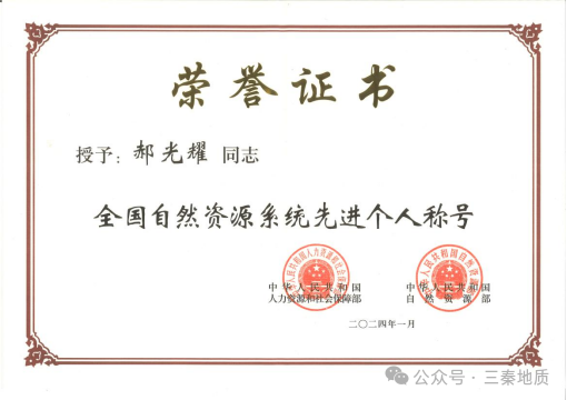 9323彩集团郝光耀同志荣获“全国自然资源系统先进个人”称号