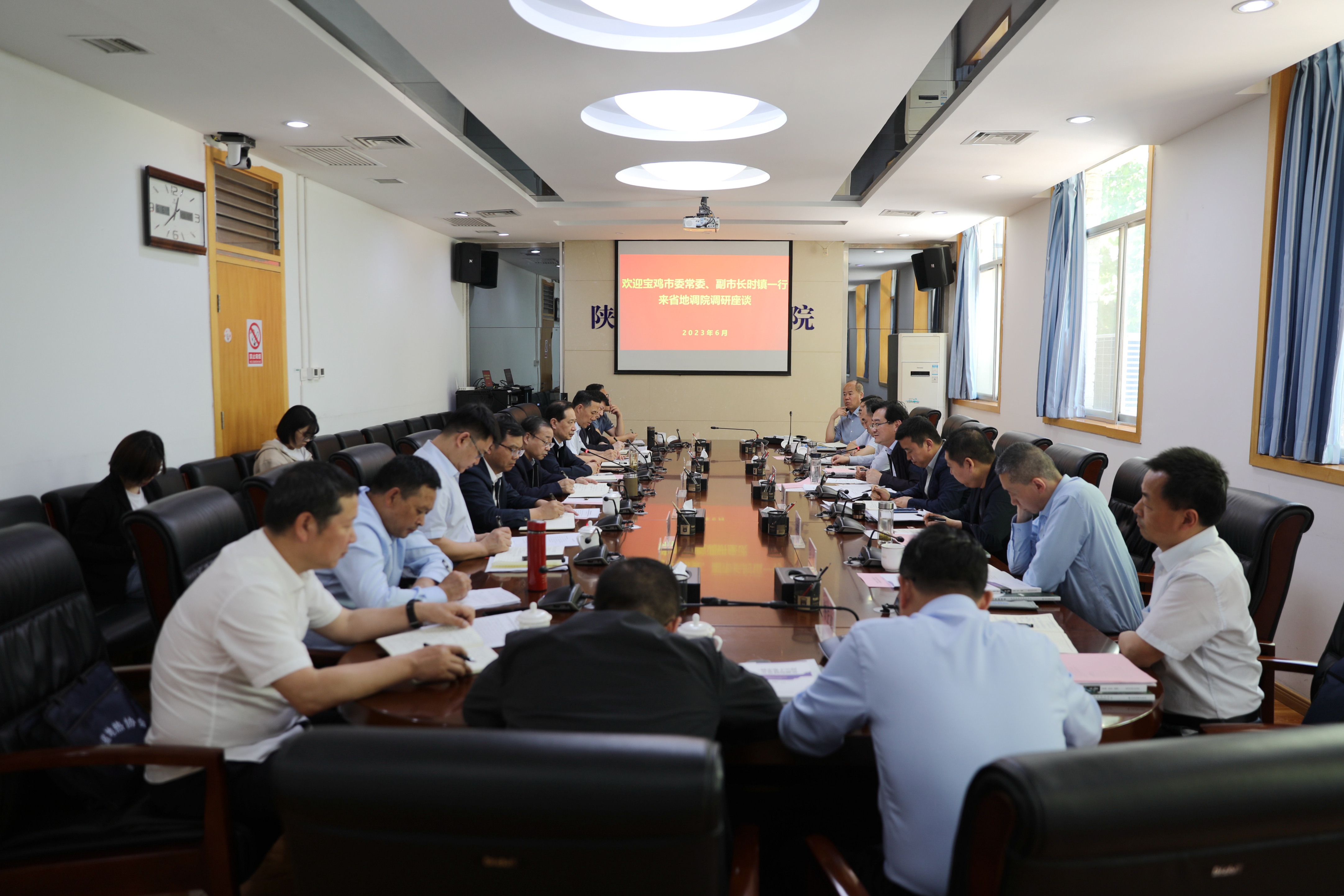 6月6日上午,宝鸡市委常委、副市长时镇率领市政府办公室、市发改委、市自然资源和规划局、市住建局、市勘察设计和节能服务中心、市相关地热企业负责同志一行10人到省地质调查院,就宝鸡市地热能开发利用工作进行调研座谈。省地质调查院洪增林、王秉琦、黄建军、张晓团等院领导,相关处室单位、省地热协会有关负责同志参加座谈