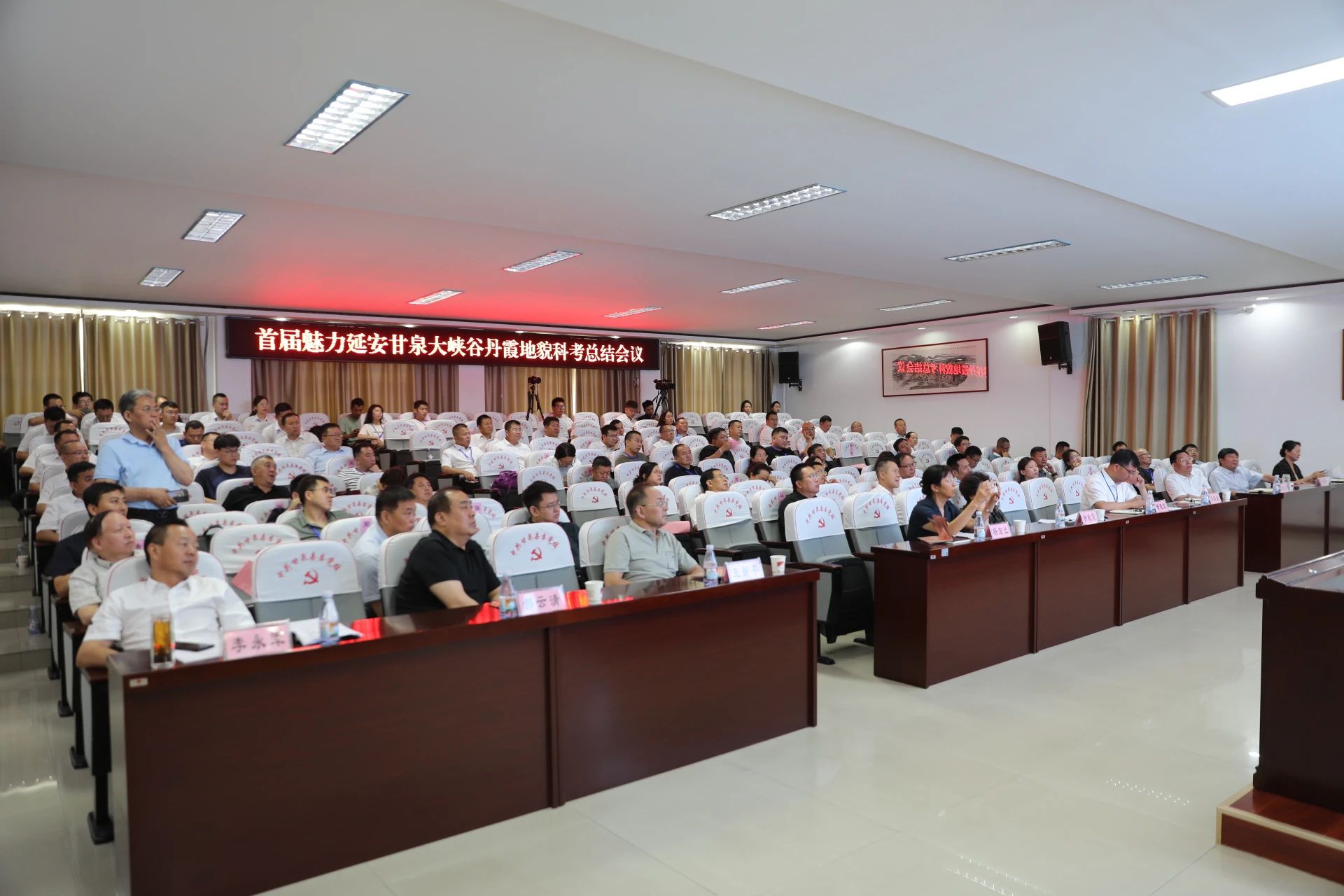 科考总结会上,各位领导、专家交流分享此次科考成果与见解,为深入了解甘泉大峡谷丹霞地貌的特征、形成机制以及保护开发策略,提供了坚实的科学依据和宝贵的指导意见。