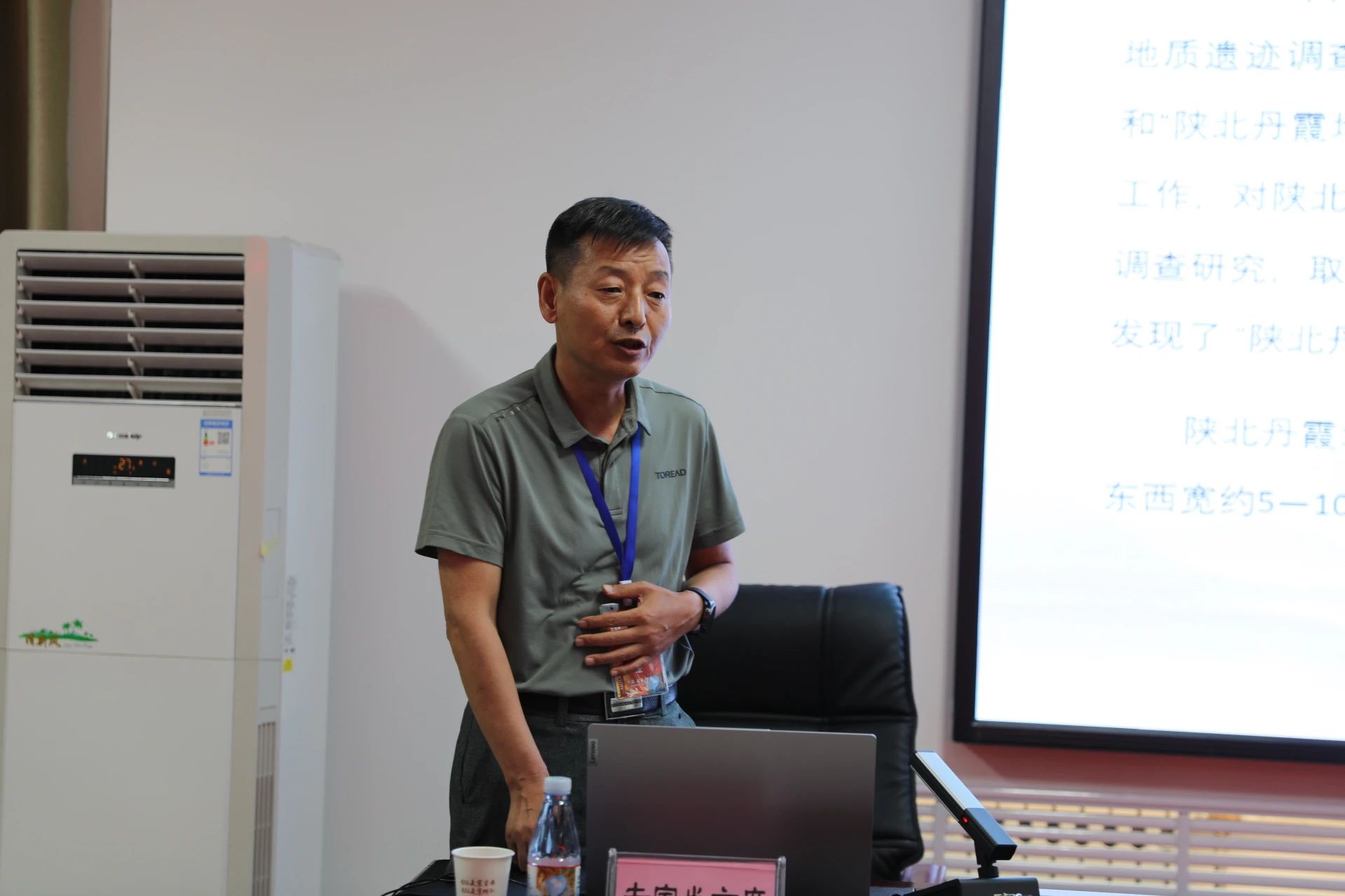 省地质调查院正高级工程师李益朝作了《魅力延安 甘泉大峡谷丹霞地貌科考成果》的主旨汇报,在前期调查研究的基础上,结合本次科考活动,系统介绍了甘泉大峡谷资源概况、文旅科普和野外调查成果,并提出下一步开发利用建议。