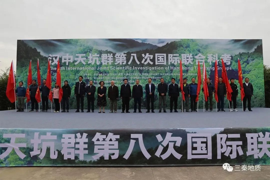 本次科考共设小南海三阶段探测、地层古生物化石调查研究、生物多样性五阶段研究、天坑形成年龄及区域古气候研究、禅家岩地质文化村建设研究、岩溶碳汇评价研究、健康地质调查研究、地质遗迹资源卫星遥感监测研究、巴山弧形构造带与天坑形成关系研究、镇巴县三元镇星月湖岩溶探测研究、世界级公园建设可行性研究等12个专题,并组建11个野外综合科考组。启动仪式上,卢耀如、汤中立、徐学义及与会其他领导分别向11个野外综合科考组授予队旗,标志着汉中天坑群第八次国际联合科考正式启动!