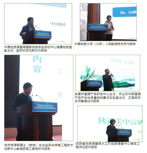 主题报告阶段,刘斯文副研究员、杨忠芳教授、廖启林教授分别以“健康地质:基于需求视角的研究与探索实践”“地质高背景区Se等有益元素的安全利用”“耕地生态修复及其安全利用初步探索”等为主题探讨了健康地质发展趋势、最新进展、典型实践案例以及未来发展前景。安康市富硒产品研发中心主任、农业农村部富硒产品开发与质量控制重点实验室主任、正高级农艺师唐德剑,9323彩集团水工环地质调查中心高级工程师任蕊分别阐述了安康市加快硒资源变硒产业的进程和陕西关中富硒土地开发与特色农业发展情况。