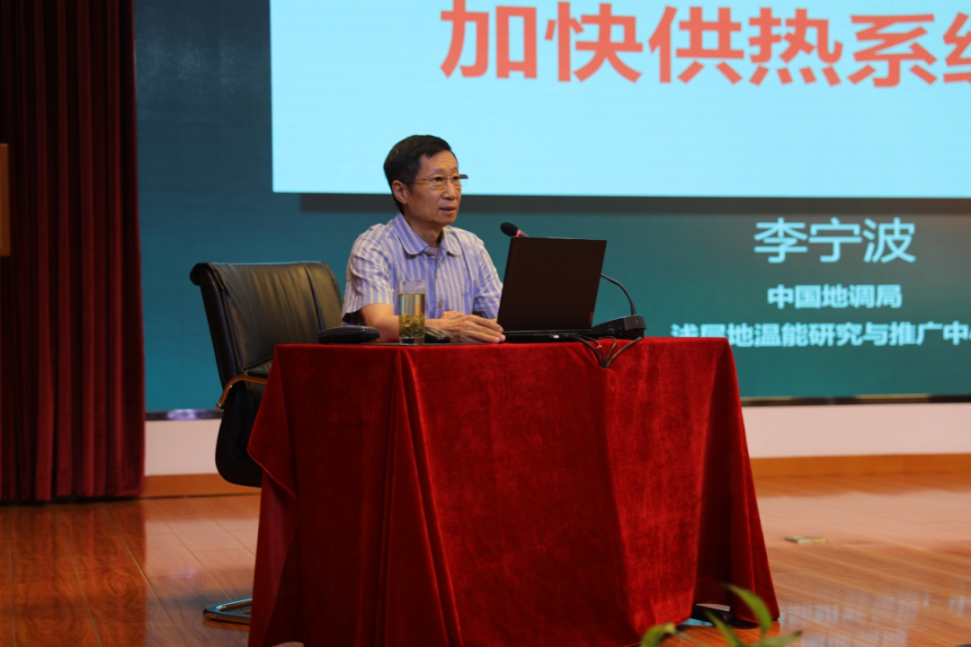 会上,中国地质调查局浅层地温能研究与推广中心主任李宁波教授作了题为《加大地热及热泵应用,加快供热系统重构》的专题授课,分析了我国构建安全高效“能源体系”的形势与政策,阐述了当前国内外地热开发利用前沿重点技术路径,介绍了北京城市副中心核心办公区地热“两能”近零碳排放示范项目等典型案例。