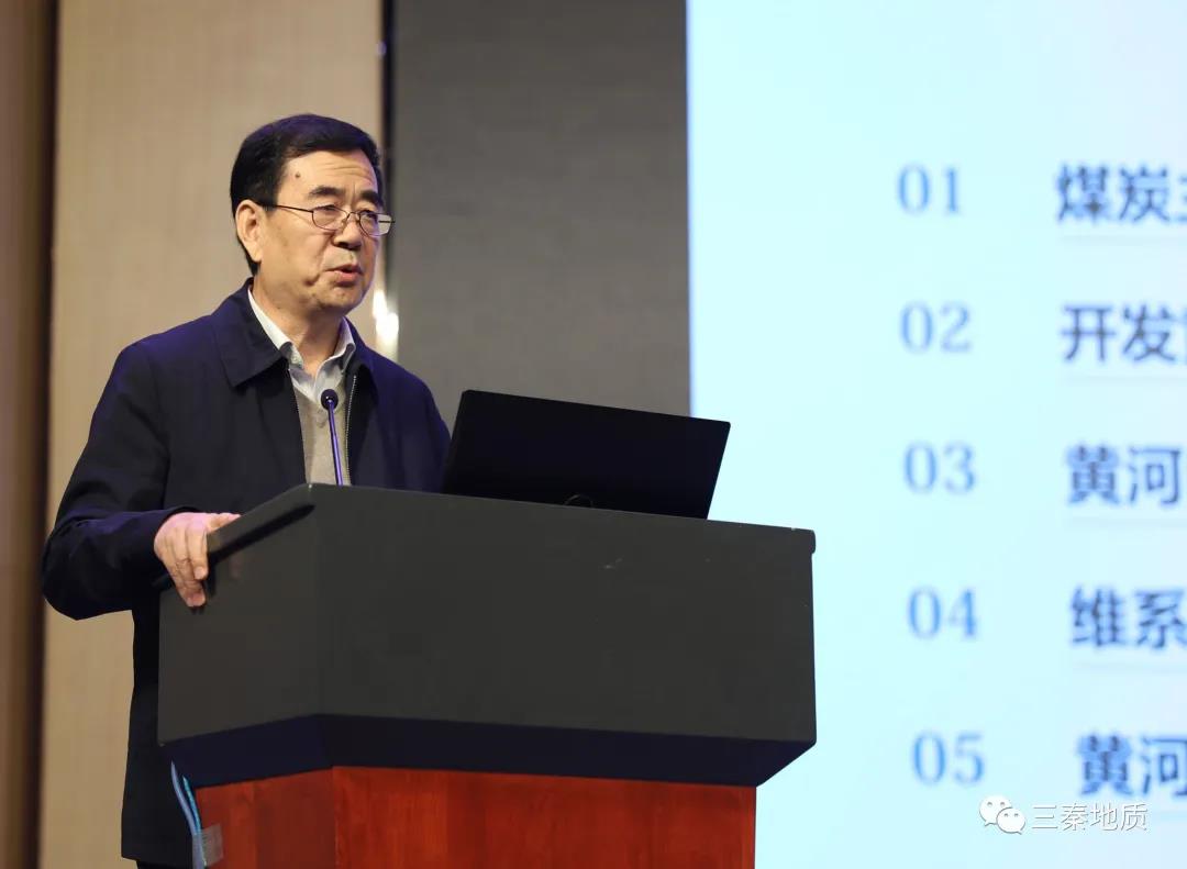 中国工程院王双明院士以“煤炭主体能源地位与黄河中段煤炭绿色开采”为题,论述了煤炭主体能源地位短期内难以改变的现状、提出开发黄河中段煤炭是保障国家能源安全的重大需求,从具体数据展现了黄河中段煤炭开发和环境保护的矛盾,重点研讨了维系地表生态系统的地质条件与采动损害机理,及黄河流域煤炭高质量发展的绿色开采理念与实践。他认为,开发西部煤炭是保障国家能源安全的重大需求,实现煤炭开采与矿区生态环境协调发展,是黄河流域煤炭工业高质量发展必须破解的重大科学问题。黄河流域中段生态环境脆弱,煤炭开采必须做到生态环境保护优先,要坚持以保护生态水位为核心的减沉、减损、保水绿色开采技术,为实现黄河流域煤炭工业高质量发展做好重要的技术支撑。