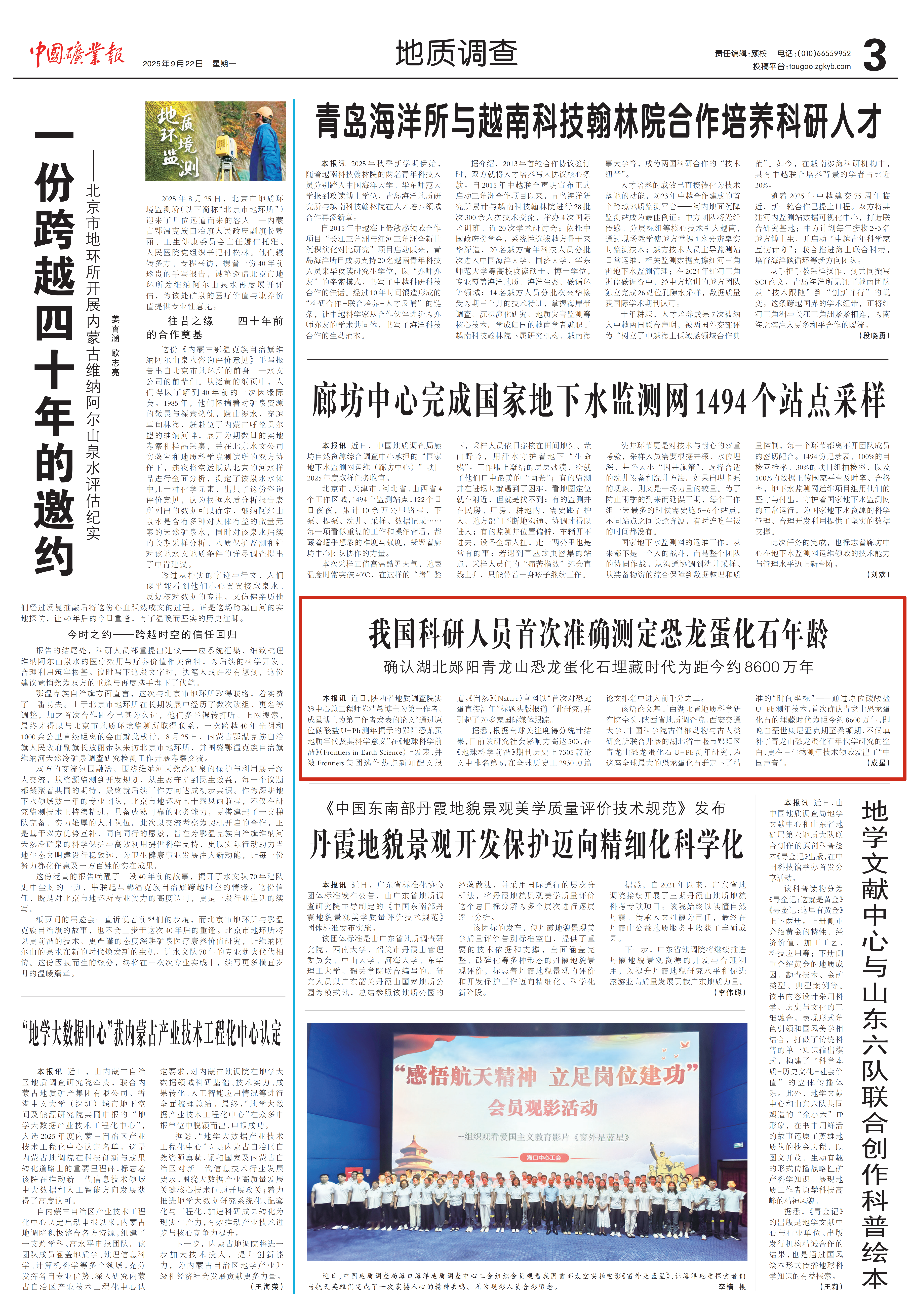 中国矿业报:我国科研人员首次准确测定恐龙蛋化石年龄 确认湖北郧阳青龙山恐龙蛋化石埋藏时代为距今约8600万年