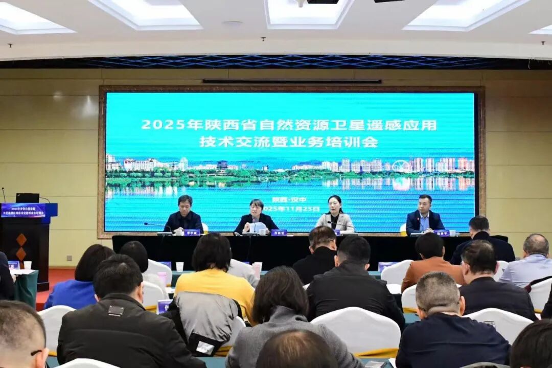 11月25日,2025年全省自然资源卫星遥感应用技术交流暨业务培训会在汉中召开。省自然资源厅党组成员、一级巡视员许秋雯,省地质调查院副院长李学斌,汉中市人民政府副市长郑雪梅出席会议并讲话。