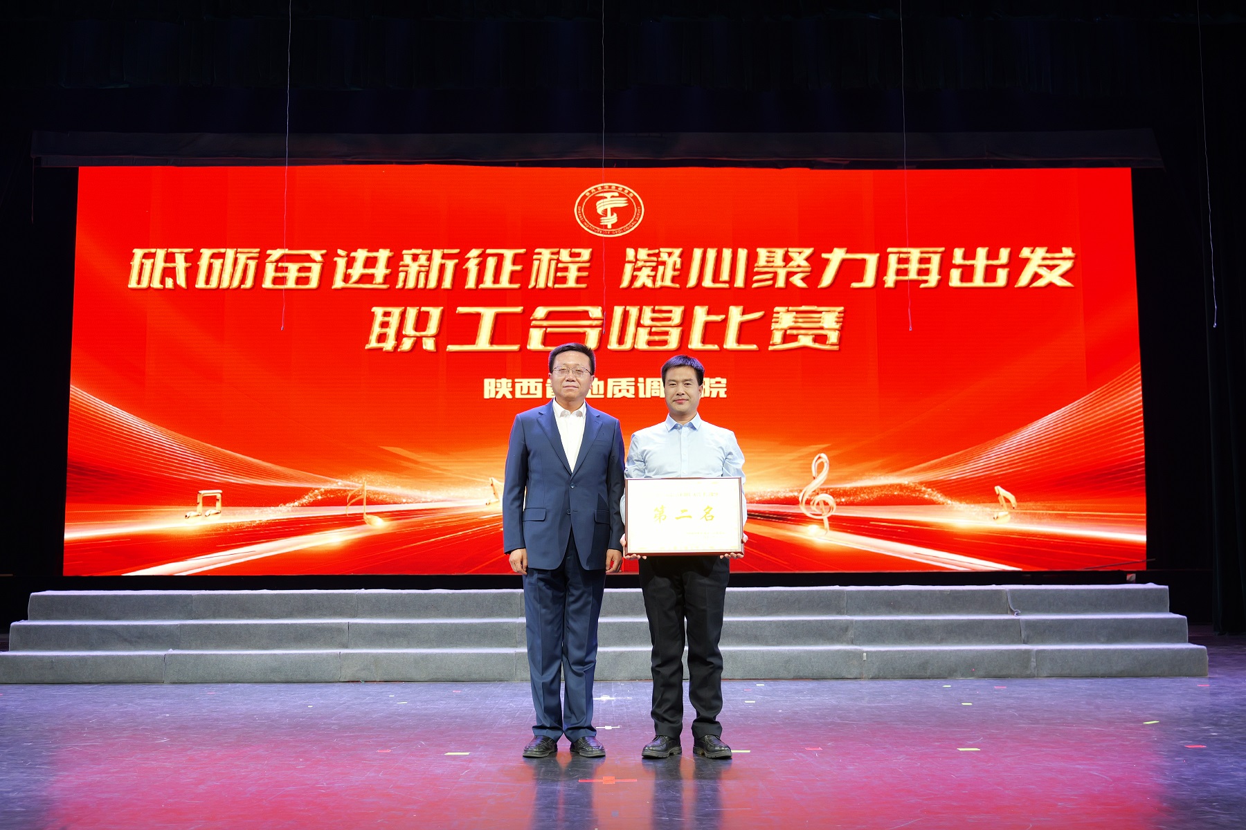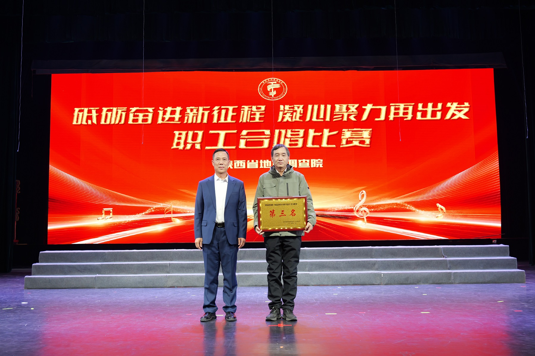 “攀秦岭、跨渭水,探奇迹、寻资源……”《地质调查之歌》大气磅礴,表达陕西地调人勇挑重担、攻坚克难的“三光荣”“四特别”精神;《勘探队员之歌》唱出地调人浪漫主义激情和青春报国的情怀;《劳动托起中国梦》唱出用劳动开创未来,用奋斗实现梦想的无穷动力;《奋进新时代》铿锵有力、壮阔豪迈,唱出中华民族伟大复兴的美好新梦想……一首首歌曲唱出地调人的家国情怀,展现砥砺奋进新征程、凝心聚力再出发的精气神。