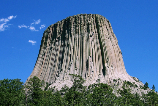 美国怀俄明州的恶魔塔,由高约386米的玄武岩柱组成,位于美国怀俄明州东北部。1906年,时任总统西奥多·罗斯福将其定为美国的第一个国家纪念碑。
