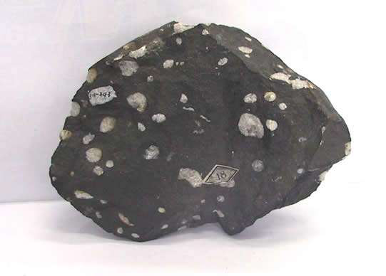 玄武岩具有杏仁构造的黑色玄武岩,杏仁多由方解石组成