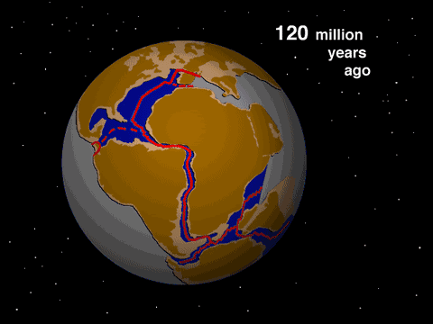 上图内褐色条带为新生洋中脊玄武岩