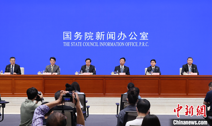 7月11日,中国国务院新闻办公室在北京举行“权威部门话开局”系列主题新闻发布会,自然资源部部长、国家自然资源总督察王广华,自然资源部副部长、国家海洋局局长王宏,自然资源部副部长庄少勤,自然资源部副部长刘国洪,国家林业和草原局局长、国家公园管理局局长关志鸥介绍建设人与自然和谐共生的现代化有关情况,并答记者问。 中新社记者 杨可佳 摄