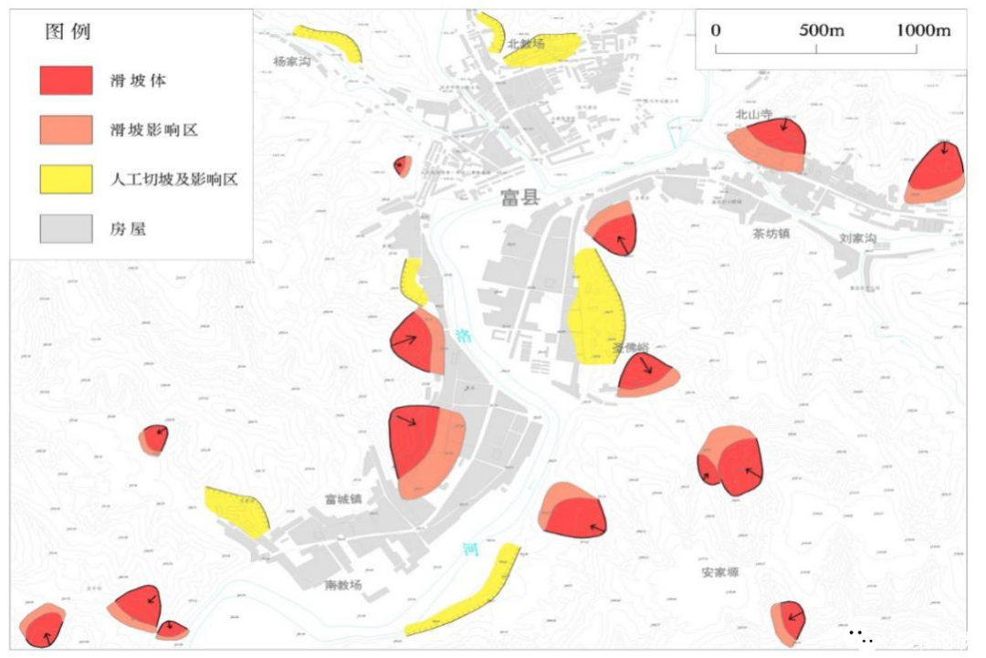 富县县城及重要城镇地质灾害分布图