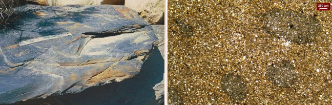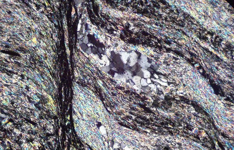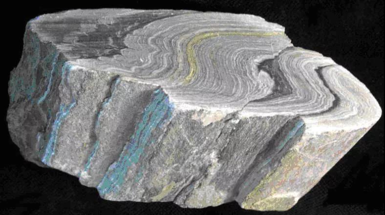 片岩主要由一些片状矿物组成,如云母、滑石、石墨等,并将其分类为母片岩、滑石片岩等。由于各方向受到不同的作用力,很多片岩具有平行的皱纹。片岩中的矿物含水旦高,说明其形成并未处于高温环境中。