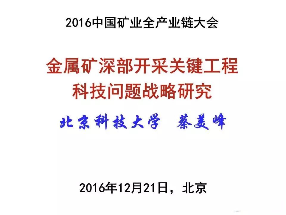 蔡美峰院士:金属矿深部开采关键工程科技问题战略研究