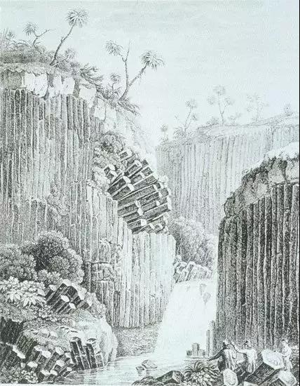 亚历山大·洪堡于1801年手绘的古巴Regla玄武岩及其柱状节理??