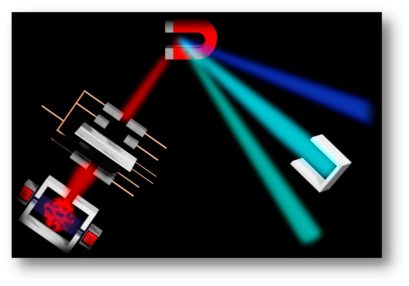 为了精确地获取这些“指纹”信息,首先要将样品转化成如二氧化碳、氮气、二氧化硫或者氢气等气体,气体分子在离子源中电离(从每个分子中将一个电子剥离,从而使得一个正电荷为每个分子所带有),接着往飞行管中打入离子化气体。飞行管是弯曲的,在飞行管上方放置磁铁,带电分子因为质量差异而分离。在飞行管的末端有一个法拉第收集器,用来对经过磁体分离之后,具有特定质量的离子束强度进行测量,因为其是将样品转化成气体才可以测量,因此又被称为气体同位素比质谱仪(图2)。
