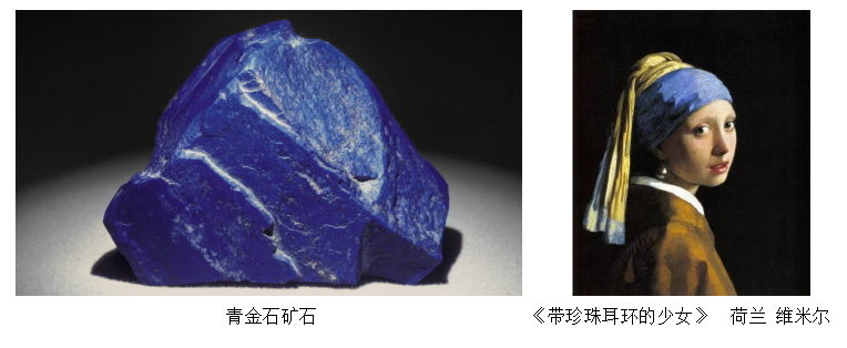 青金石的色相是一种纯度很高的蓝色,具有很强的视觉穿透性,艳丽而纯粹,我国古代很早就把它作为彩绘用的蓝色颜料。我国现存最早的石窟——新疆克孜尔石窟的佛教彩绘中大量使用了青金石颜料,因而还被称为“蓝色石窟”。西方艺术史上,文艺复兴时期的大量绘画中也使用了青金石颜料。