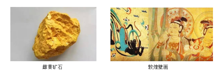 在中国古代,雌黄常用来修改错字,有篡改文章的意思,故有成语“信口雌黄”。雌黄作为一种罕见的清晰且明亮的黄色颜料,长期被东西方文明用于绘画。古籍记载,甘肃敦煌县雌黄州以盛产雌黄闻名,在敦煌莫高窟的壁画中,雌黄就成了最常见的颜料之一。