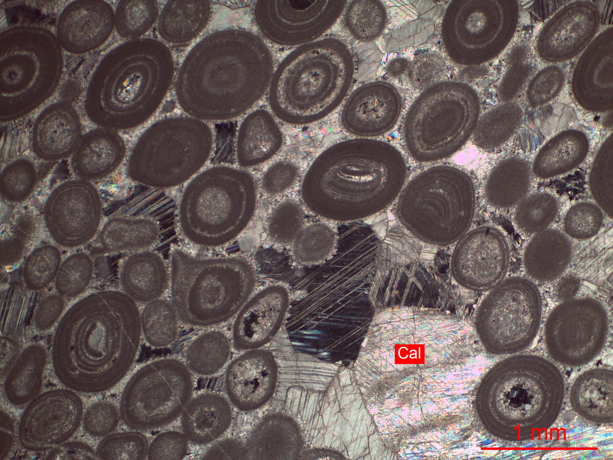 灰色亮晶鲕粒灰岩25x(正交偏光+)