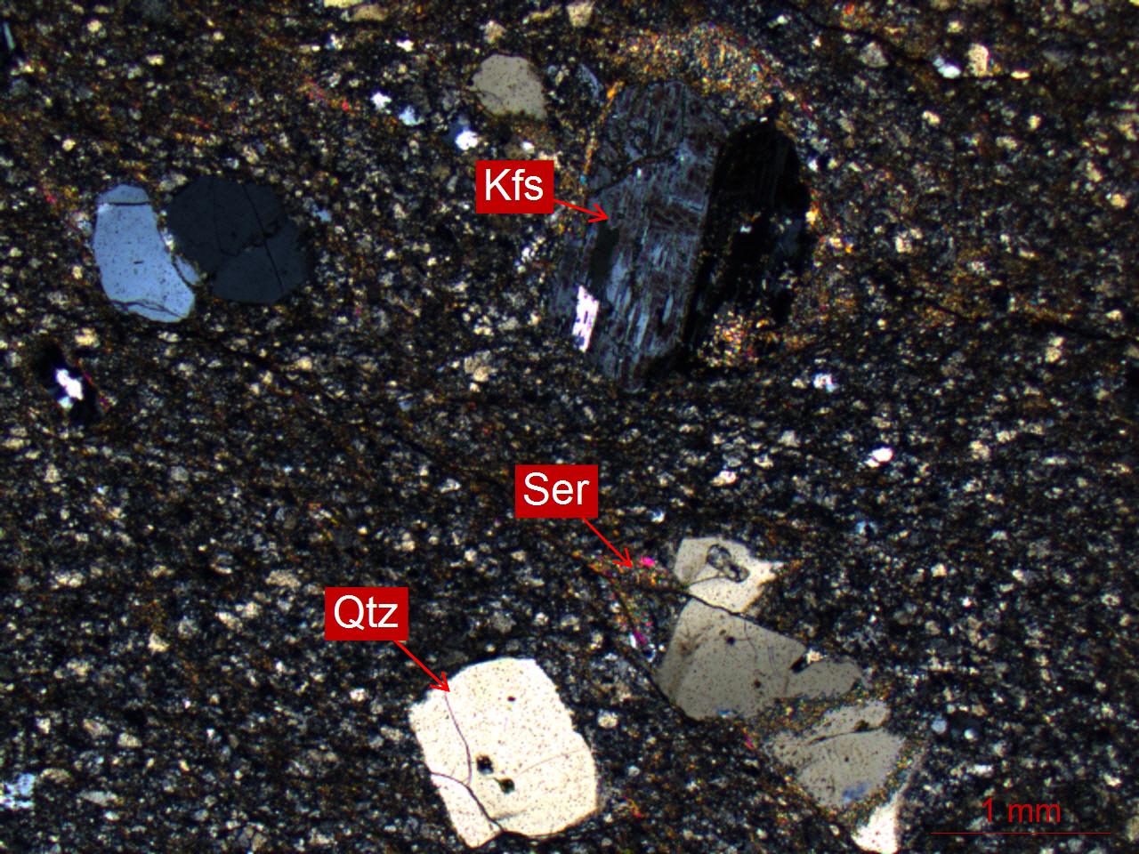 Qtz-石英、Kfs-钾长石、Ser-绢云母