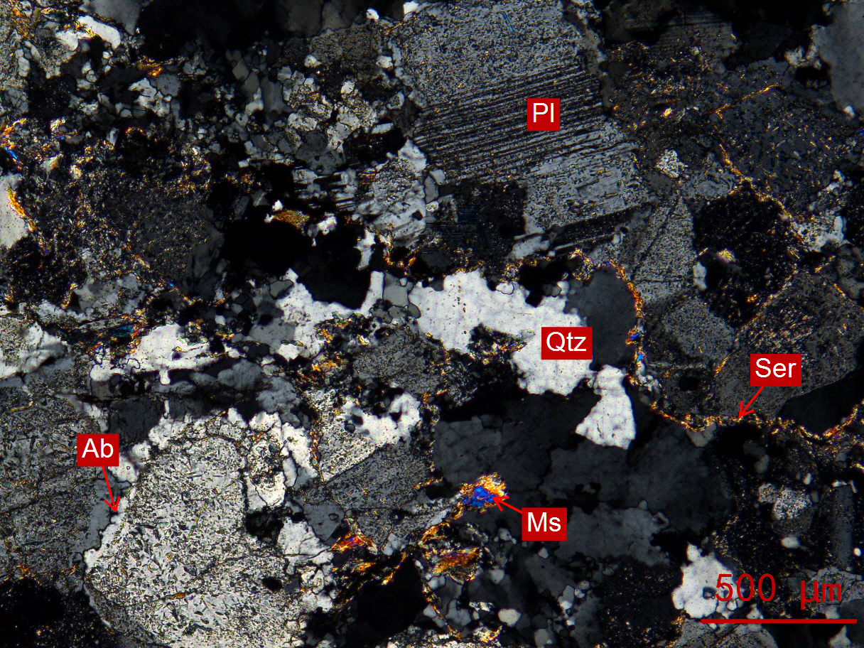 Qtz-石英、Pl-斜长石、Ms-白云母、Ser-绢云母、Ab-钠长石