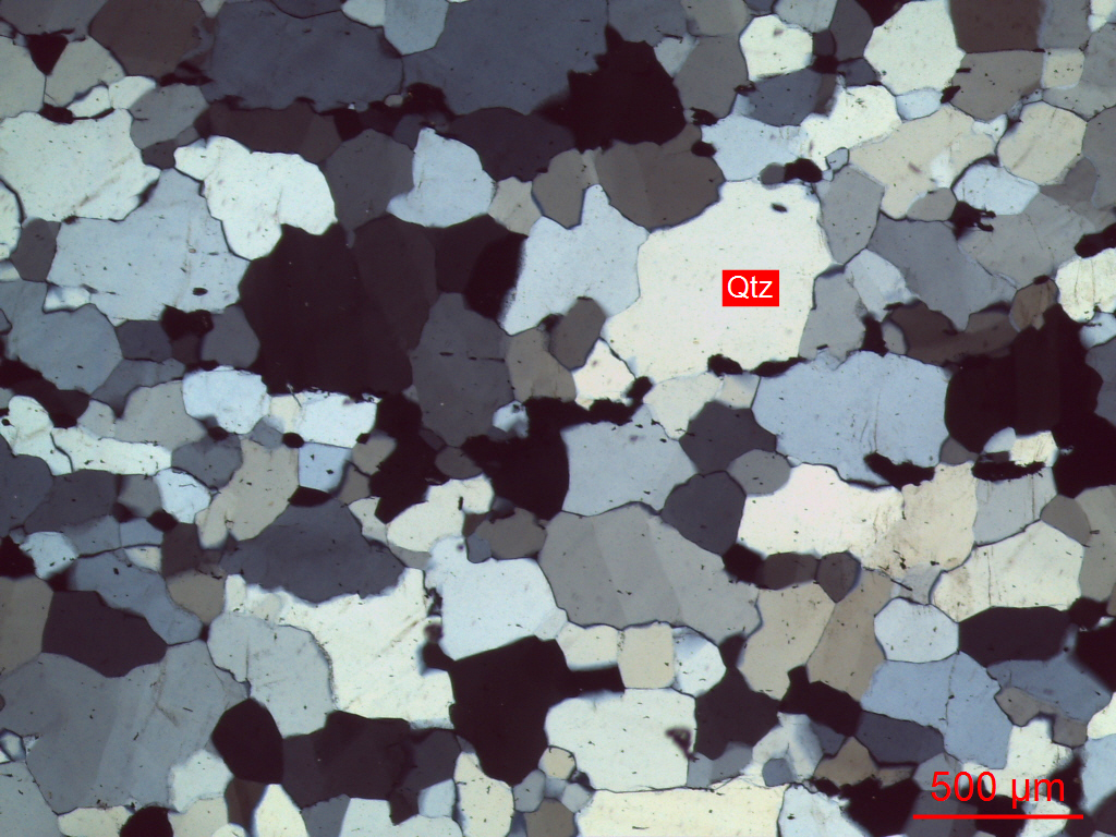 灰色细粒石英岩40x(正交偏光+)