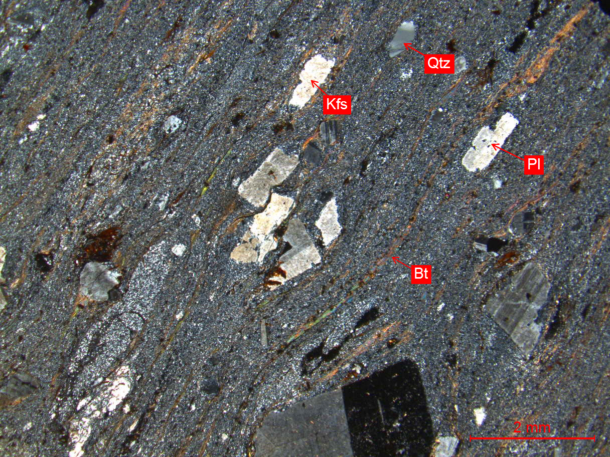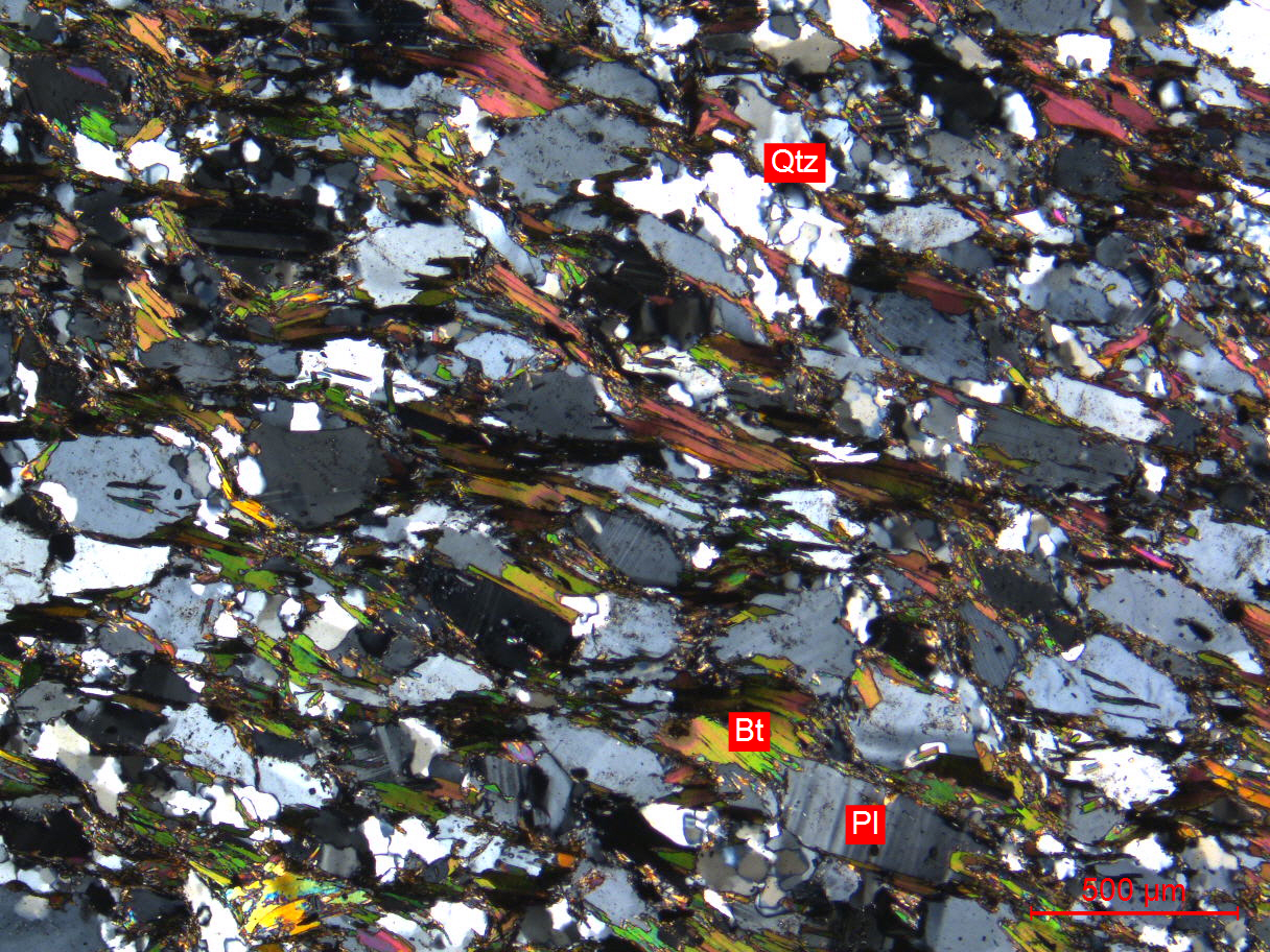Qtz-石英、Bt-黑云母、Pl-斜长石