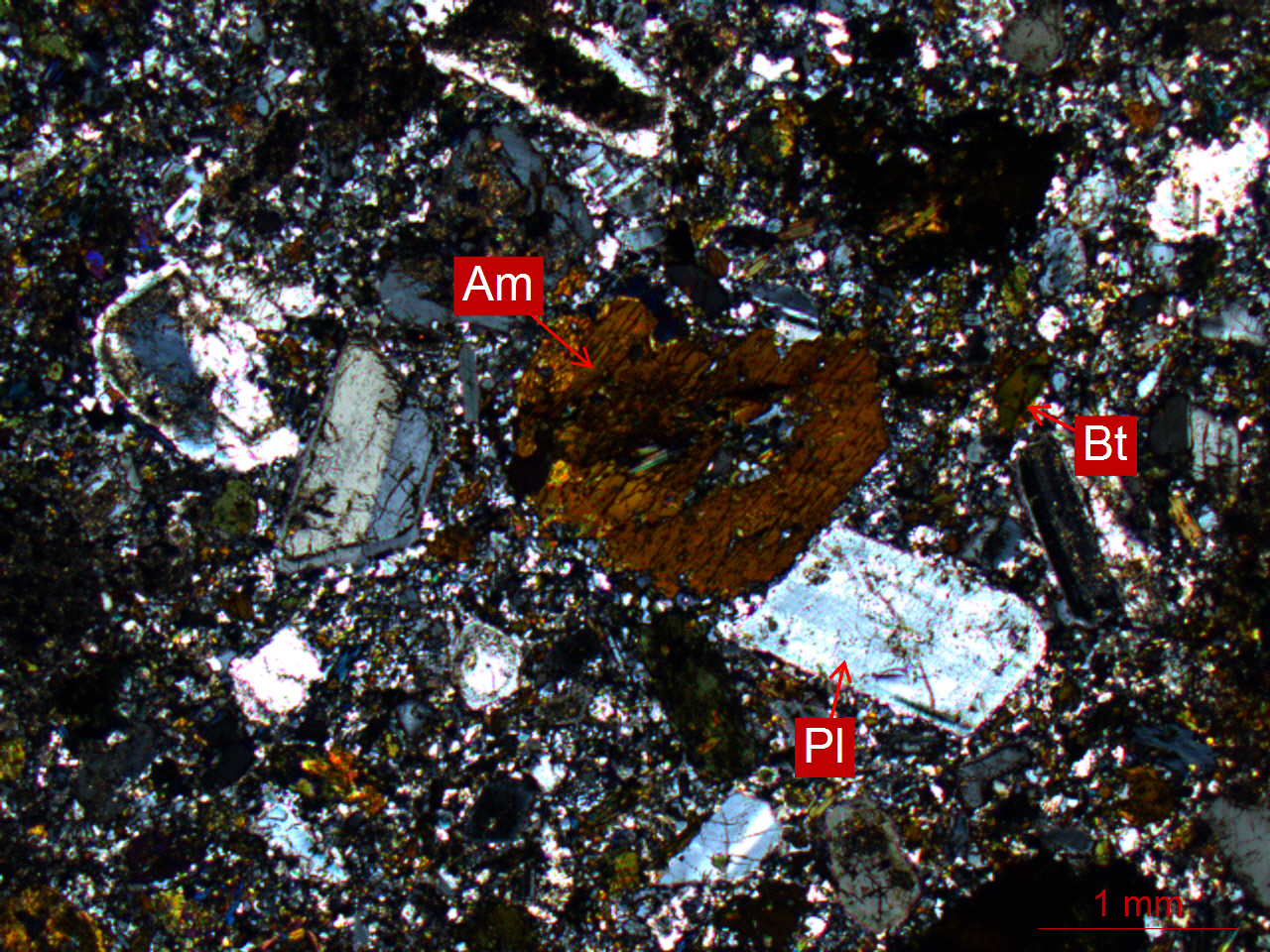 Pl-斜长石、Am-角闪石、Bt-黑云母