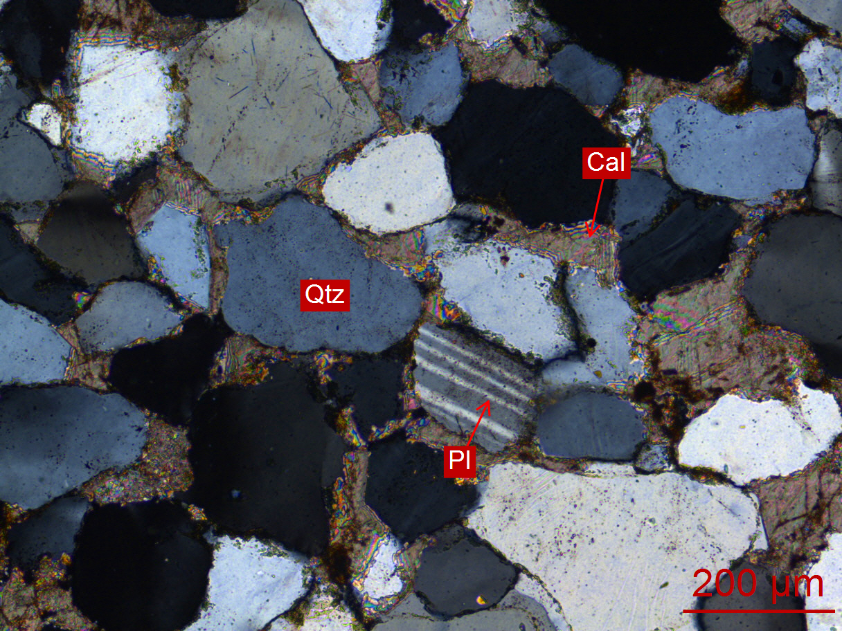 Qtz-石英、Pl-斜长石、Cal-方解石