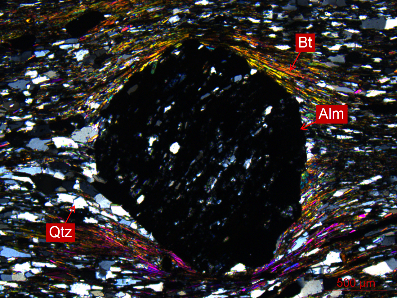 Bt-黑云母、Qtz-石英、Alm-铁铝榴石
