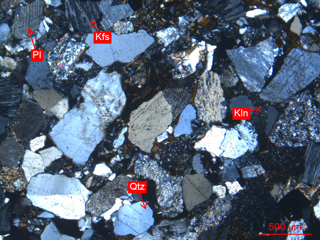 Qtz-石英、Pl-斜长石、Kfs-钾长石、Kln-高岭石