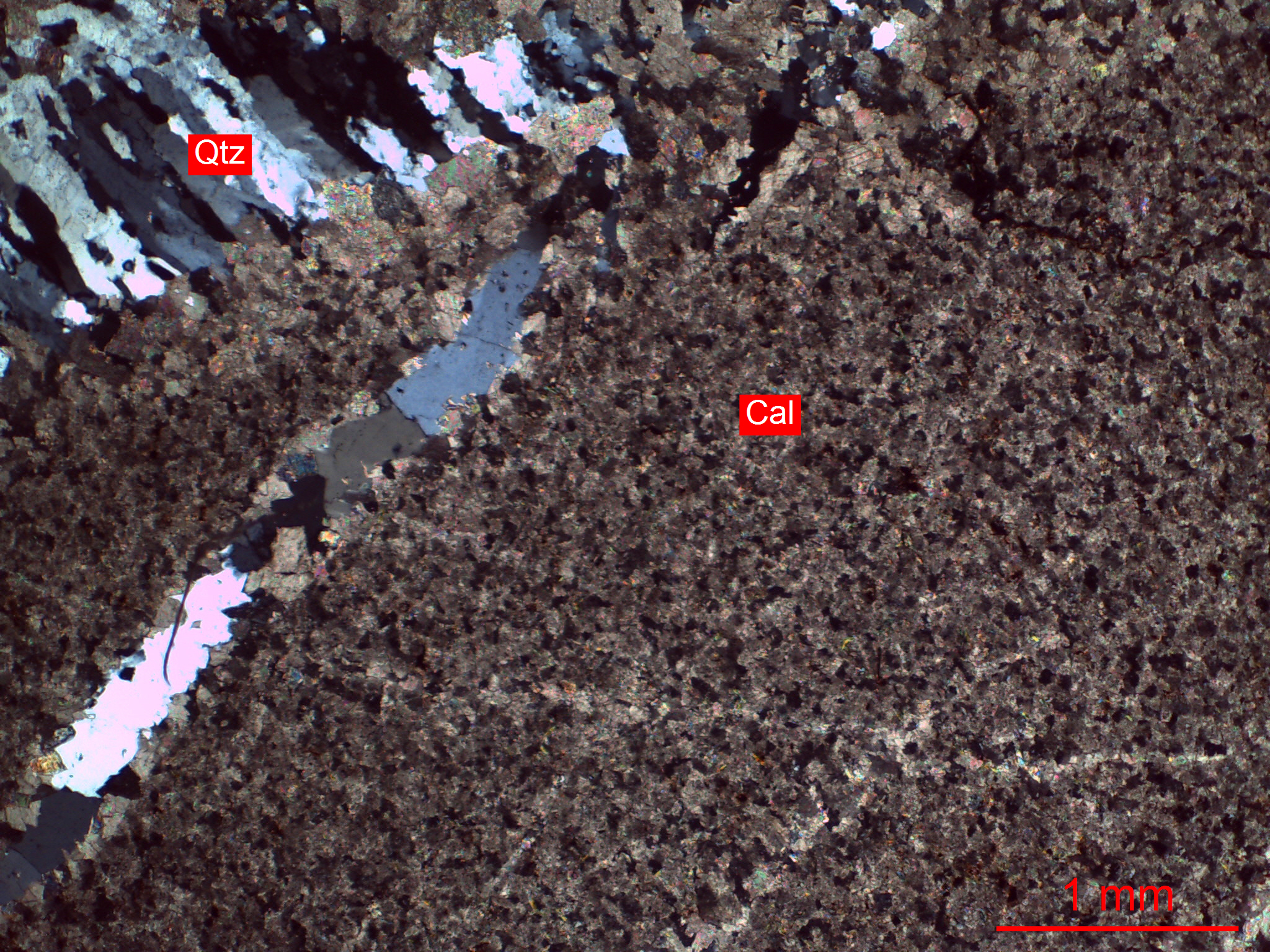 Cal-方解石、Qtz-石英
