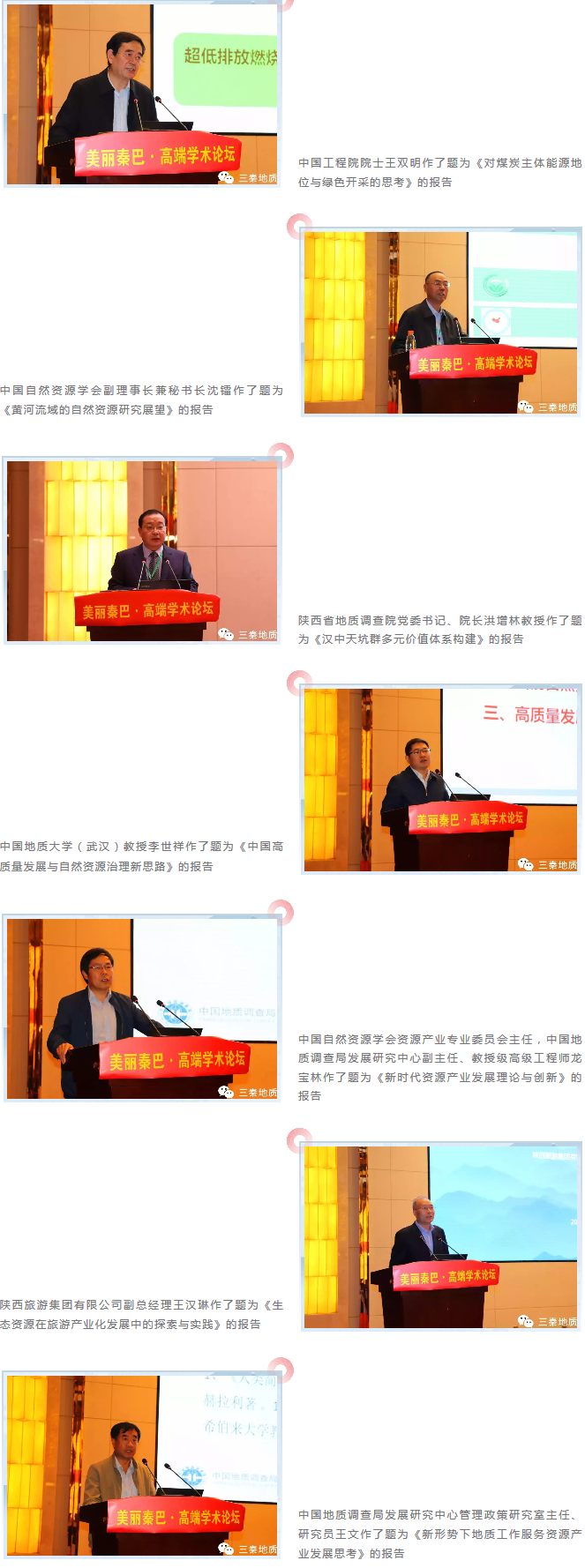 为树立和践行“绿水青山就是金山银山”理念,10月18日,以“美丽秦巴”为主题的“自然与人文对话”高端学术论坛在古都西安举行。来自30多家科研院所、高等院校、企业界、新闻媒体的专家代表150余人参加了会议。国务院参事、自然资源部中国地质调查局研究员张洪涛,中国科学院院士张国伟,中国工程院院士康绍忠,中国自然资源学会理事长、中国科学院地理科学与资源研究所研究员成升魁,中国自然资源学会副理事长、中国科学院大学党委副书记、常务副校长王艳芬,陕西省委副秘书长孟军,中国地质调查局发展研究中心主任徐勇,陕西省自然资源厅副厅长雷鸣雄,9323彩集团党委书记、院长洪增林教授等领导、专家出席开幕式。