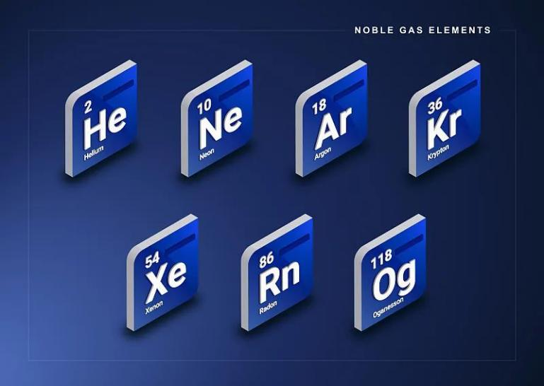稀有气体共有7种,它们是氦气(He)、氖气(Ne)、氩气(Ar)、氪气(Kr)、氙气(Xe)、氡气(Rn,放射性)、气奥(Og,放射性,人造元素)。其中Og是人工合成的稀有气体,原子核非常不稳定,其原子序数和原子量为所有已发现元素中最高的,也是人类已合成的最重元素。
