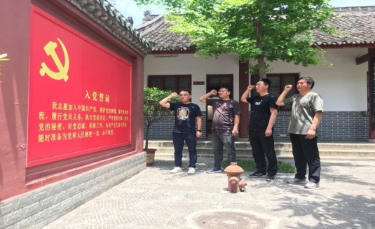 参观结束后,党员们面对鲜红的党旗重温入党誓词,再次感受了作为一名党员所肩负的神圣职责和使命,时刻警醒自己,牢记党员身份,牢记党的宗旨。