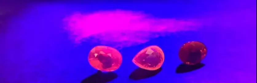 红宝石往往具有较强的荧光,主要与Cr元素有关,但是天然红宝石中往往会含有其他类型的杂质元素,会导致红宝石呈现各种各样的荧光特征。不过整体上讲,荧光的强度是要弱于合成红宝石的。