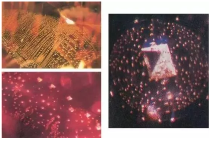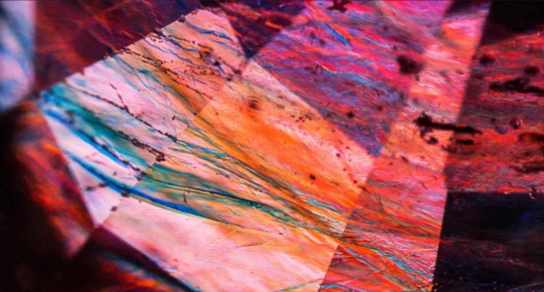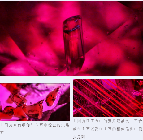 显微特征同样是鉴定合成宝石最重要的特征,由于与天然宝石生长环境迥异,因此会出现与天然红宝石相悖的特征,由此鉴定。