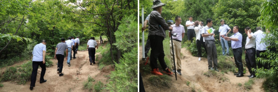 中午,全体党员深入唐昭陵地下遗址精细探测与虚拟景观再现示范工程项目工作地,实地了解项目组利用地球物理无损探测技术进行科技考古的情况,在九嵕山北坡体验了地质工作者头顶烈日,手攀脚蹬穿越测线,携带精密仪器探测的艰辛。随后,大家听取了项目成果汇报,了解到项目是国内首次利用地球物理技术进行“依山为陵”帝陵的考古探测工作,地形条件差、技术要求高,困难重重,项目组敢于探索、勇于创新,在地下遗址数字展示,文化旅游产品开发,陕西帝陵探测方法技术体系研究等方面取得了优异的成绩。大家纷纷表示,要继承和发扬地质工作者这种艰苦奋斗、开拓创新的精神。