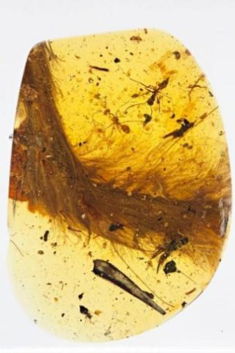 2016年,古生物学家首次在琥珀中发现了恐龙,被保存在琥珀里的,是一条白垩纪小恐龙的尾巴,包含了至少八枚完整的尾椎,它们被三维的、具有微观细节的羽毛所包围。透过它,亿万年前的恐龙世界正以一种无比真实、无比鲜活的方式展现在世人面前。古生物学家杰弗里教授说,琥珀是古生物学科中最神奇的“圣杯”,生物在完美的3D空间以悬浮的动画状态保存,仿佛还活着一样。难怪唐代诗人韦应物在《咏琥珀》中这样感叹:“曾为老茯神,本是寒松液。蚊蚋落其中,千年犹可觌。”